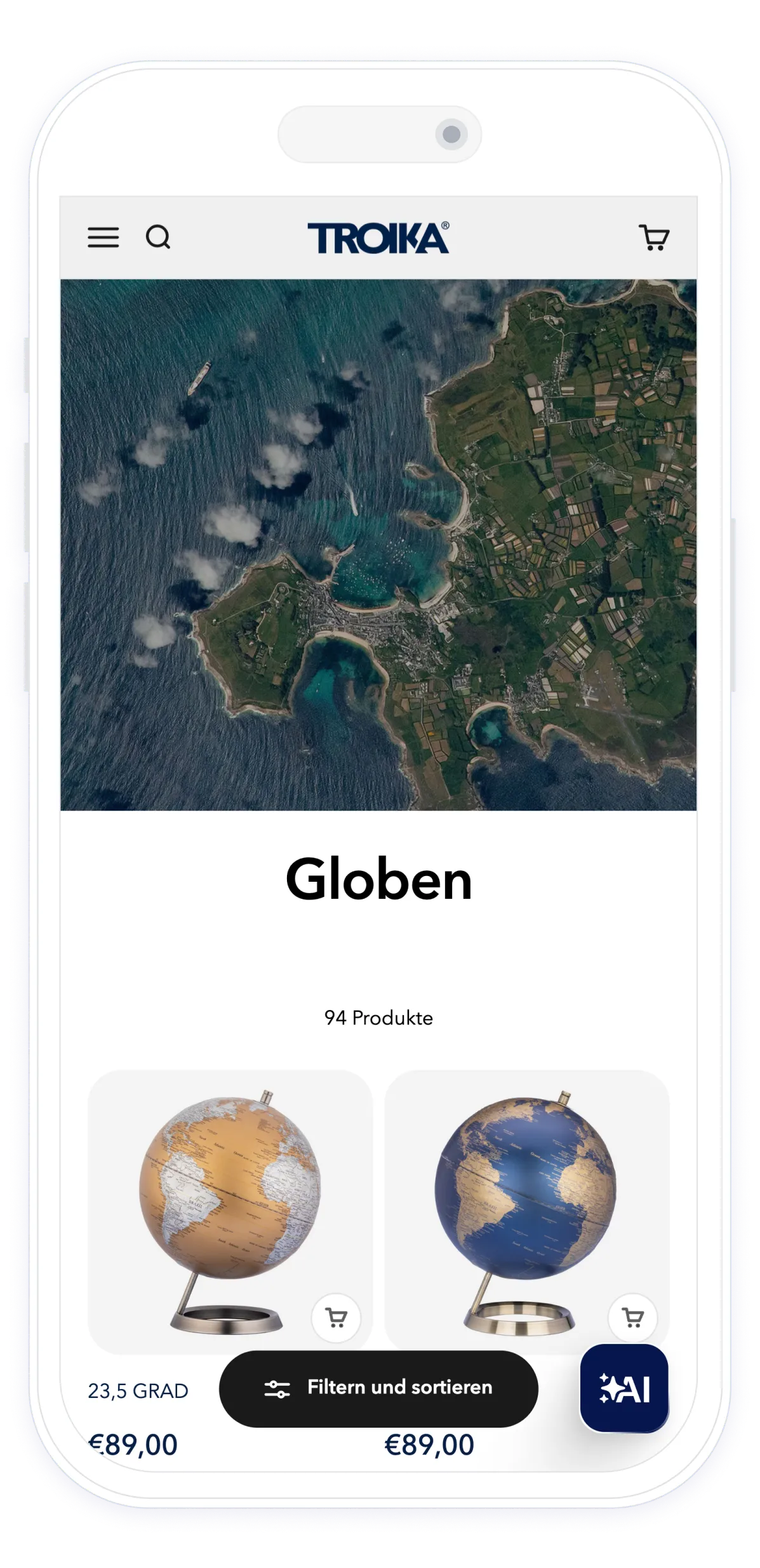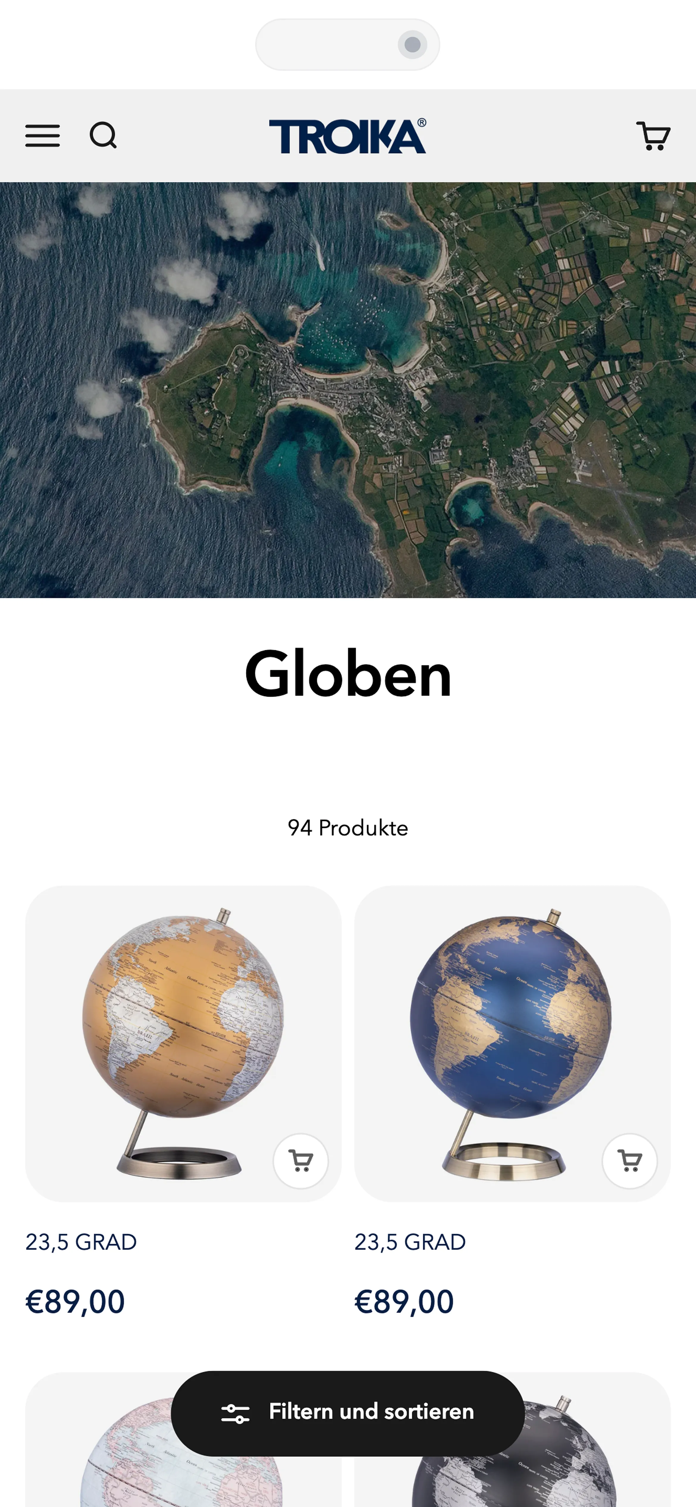 Für den Shopify-Shop wurde das Premium Theme San Francisco als Basis genutzt. In enger Abstimmung mit TROIKA wurde das Design stark visuell geprägt – großflächige Bilder und Kacheln auf der Startseite schaffen ein emotionales Markenerlebnis und führen Nutzer:innen Schritt für Schritt durch die Markenwelt.
